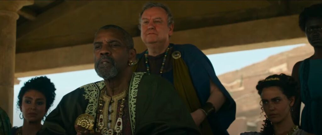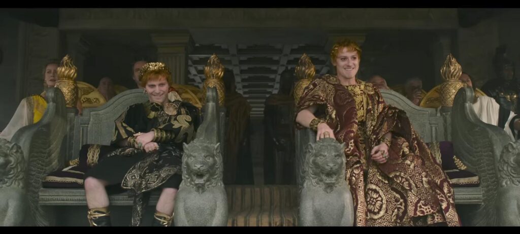 Macrinus, ever the opportunist, seizes the moment to manipulate Caracalla into killing his twin brother Geta, whispering lies about Geta’s intent to betray him. The ploy succeeds, and Caracalla, paranoid and unstable, murders Geta with Macrinus’ help. Lucilla and Hanno, now reconciled, share a quiet moment where she gives him her father’s ring, once worn by both Marcus Aurelius and Maximus. It becomes a symbol of the legacy he is destined to uphold.