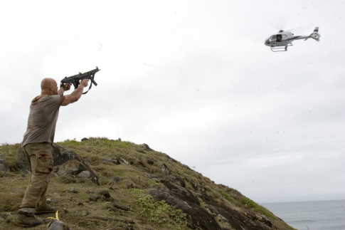 In a dramatic climax, Conrad hurls the bomb into the helicopter. Breckel, desperate to save himself, grabs for it, but the device explodes. The helicopter erupts in flames, crashing into a nearby cliff and killing Breckel. The destruction marks the end of the deadly game.